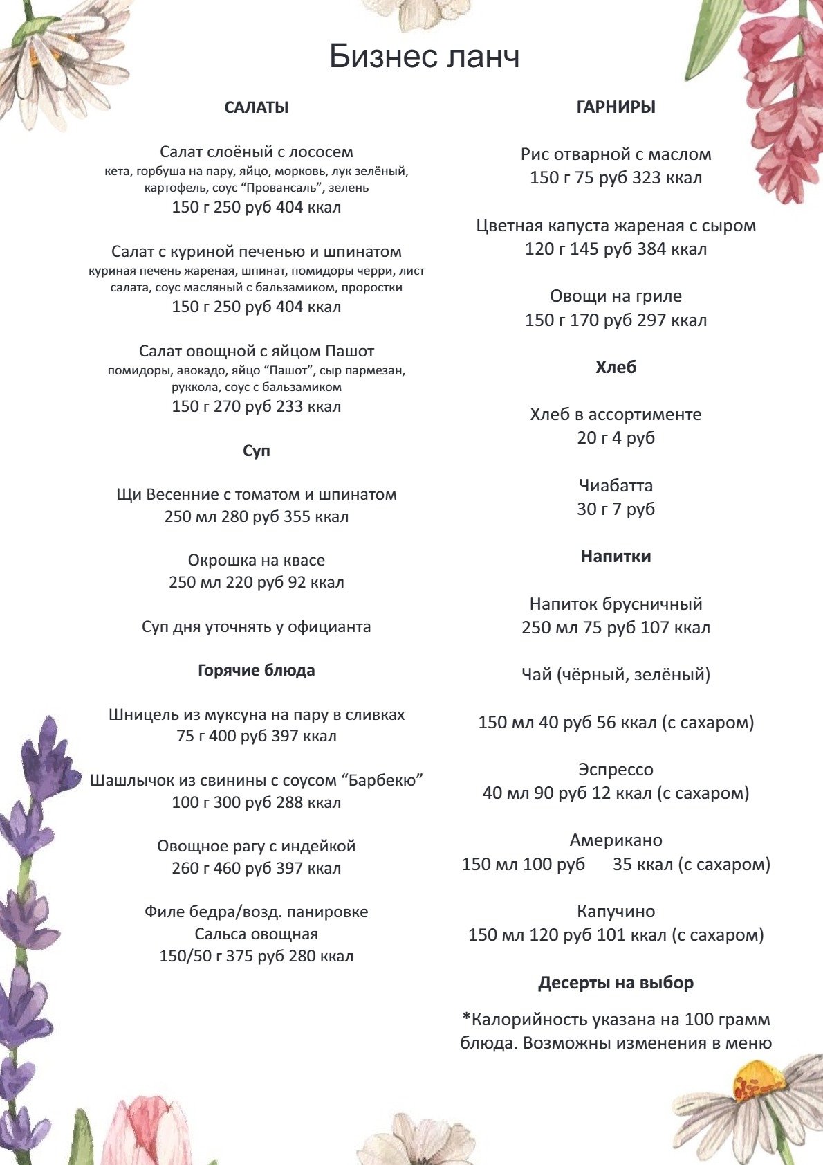 Меню кофейни на