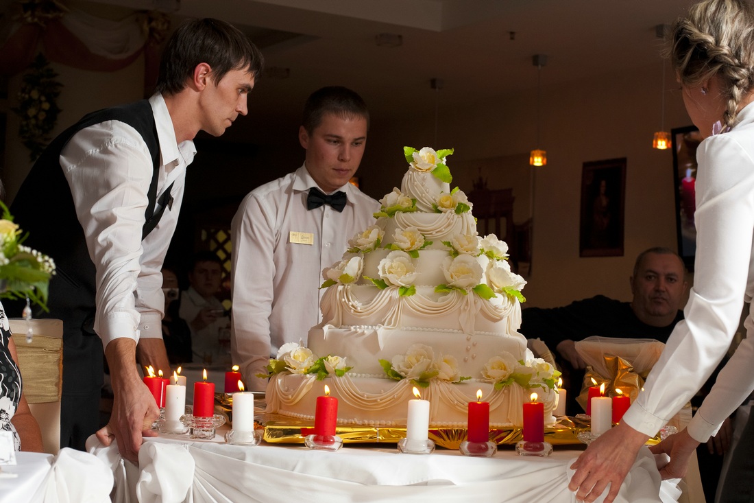 Для верхних уровней — предпочтительнее всего более лёгкие и воздушные торты — «Миндальный тарте», «Сливочные облака»